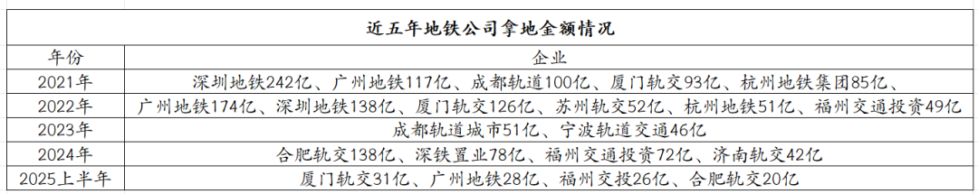 最典型的就屬廣州地鐵和廈門軌道交通建設,不僅以近30億的拿地金額位列前茅