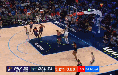 其次,在達拉斯,李月汝給自己的技術做了減法,她明顯降低了自己的低位進攻,更多做一些擋拆順下和外彈的終結,技術變得簡練了很多。另外,這個賽季李月汝的前場籃板率有驚人的14.3%,在統計範圍內僅低於天空隊的里斯和卡多索,這也是她對於球隊進攻非常重要的一部分。