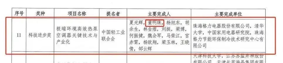 網傳的輕工業聯合會文件顯示,項目完成單位不僅有珠海格力電器,還包括清華大學、中國家用電器研究院、珠海格力節能環保製冷技術研究中心有限公司,董明珠是“主要完成人”之一。