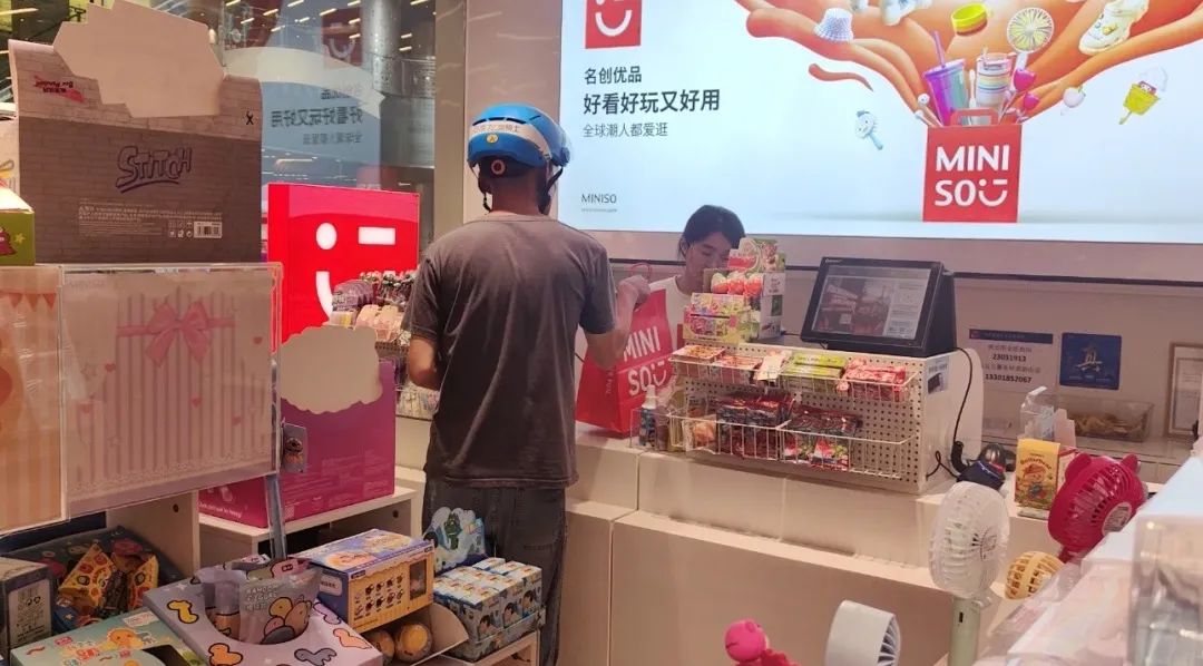 不同於熱火朝天的奧樂齊生鮮超市,名創優品、KKV等潮流精品零售店似乎未被“戰火波及”。白玉蘭廣場和北外灘來福士的名創優品和KKV儘管都已上線了各平台的“閃購”頻道,但走訪期間,記者僅見到一名餓了麼騎手來取貨,而且由於外賣訂單量少,這些店鋪不需要設置貨架,銷售員直接現場取貨和打包。