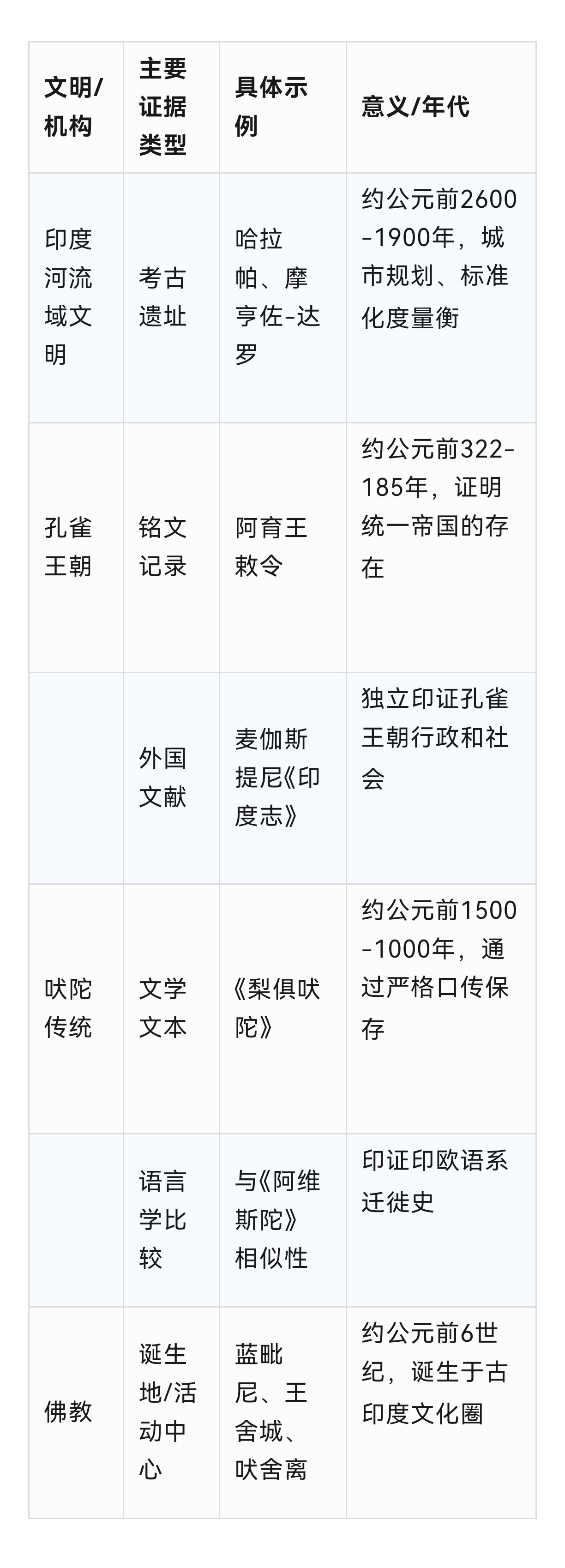 吠陀文獻的可靠性:《梨俱吠陀》(Rigveda)作為吠陀文獻中最古老的部分,其年代可追溯至約公元前1500-1000年。儘管它在被書寫下來之前經歷了數個世紀的口頭傳承,但古印度婆羅門祭司發展出了一套極其嚴謹和精確的口頭背誦方法,以確保文本(包括其音調和節奏)的精確保存。聯合國教科文組織已將這一吠陀吟誦傳統列為“人類口頭和非物質遺產代表作”。這表明,“口頭”傳承並不必然意味着“不可靠”,尤其當存在特定的文化實踐來確保其忠實性時。《梨俱吠陀》與伊朗的《阿維斯陀》(Avesta)在語言和文化上存在顯著相似性,兩者都源於共同的原始印歐-伊朗語。這種共同的遺產還體現在米坦尼(Mitanni)文獻(約公元前1450-1350年)中提及吠陀神祇。