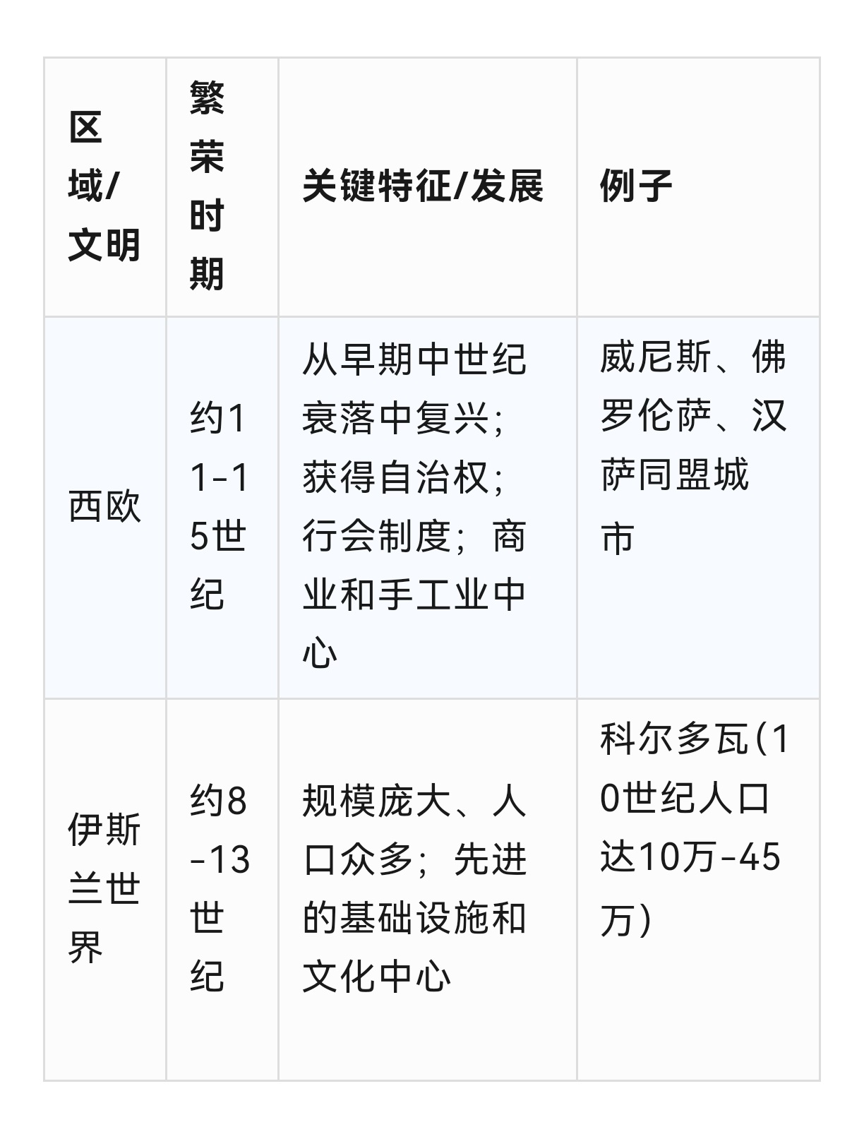 中世紀西歐城市復興:“中世紀花朵”這一説法,特別是雅各布·布克哈特(Jacob Burckhardt)所用,指的是西歐城市從11世紀開始的相對復興和日益增長的自治權,尤其是在意大利(如威尼斯、佛羅倫薩)和北歐(如漢薩同盟城市)。這一時期,城市從封建領主那裏獲得了自治特許狀,發展出強大的商人行會和手工業行會,並向商業和製造業中心轉變,為後來的歐洲發展奠定了基礎。將“花朵”比喻用於強調它們從早期中世紀(常被稱為“黑暗時代”)的相對衰落中崛起,以及它們作為社會和經濟變革催化劑的作用。