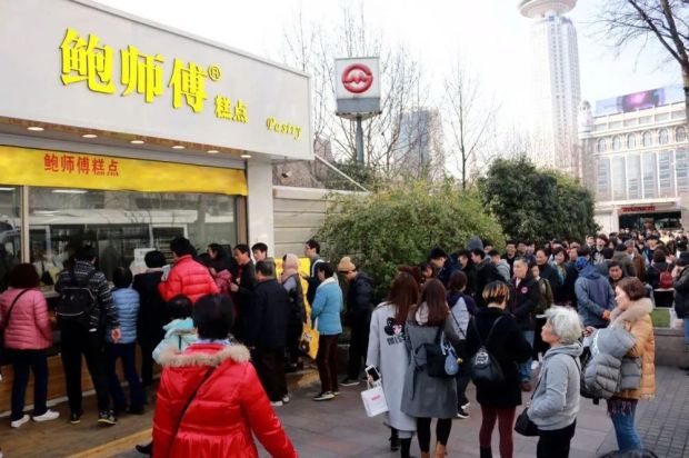 2017年2月,鮑師傅登陸上海人民廣場,開業當天就創下排隊4小時的紀錄,隨後排隊時長更達到驚人的7小時,甚至還有消息稱黃牛高價倒賣排號。媒體更是直言:隊伍排得比迪士尼還長。