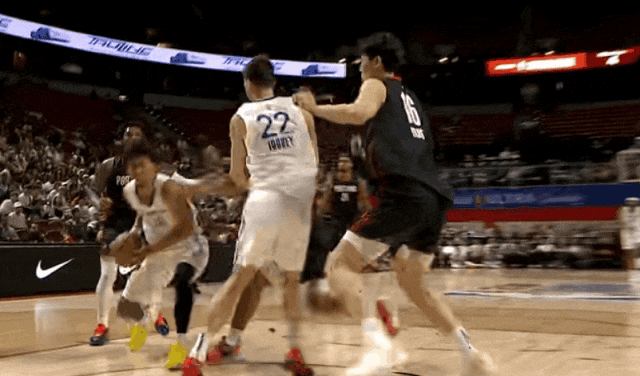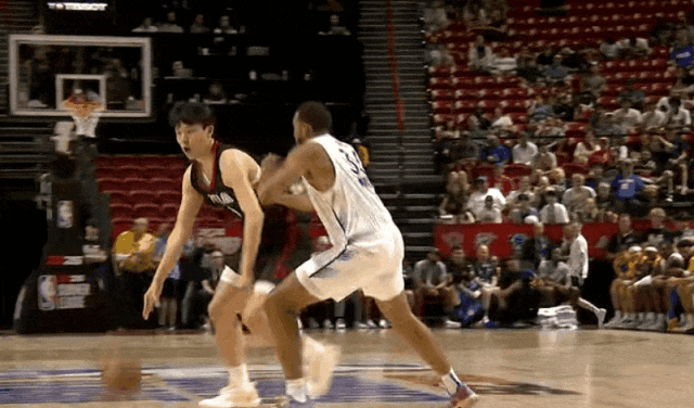 當然也有不如意處:夏聯節奏太亂太快,楊瀚森又是第一次打NBA比賽,而且着意護筐:經常是位置沒問題,但上半場就4犯規。