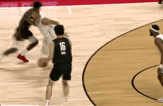 然後是指導教學的高低位連線,第三次助攻保送上籃:這一球明確了,他是全場視野和球商最高的球員。