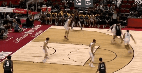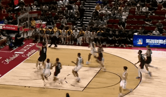 最精彩的一個封蓋是:弱側卡位,看到對手突破,從自己對位人盲側潛過,一個帽——勇士22號正常該是一個戈塔特掩護,給隊友卡出上籃機會才是,但楊瀚森潛過去了。