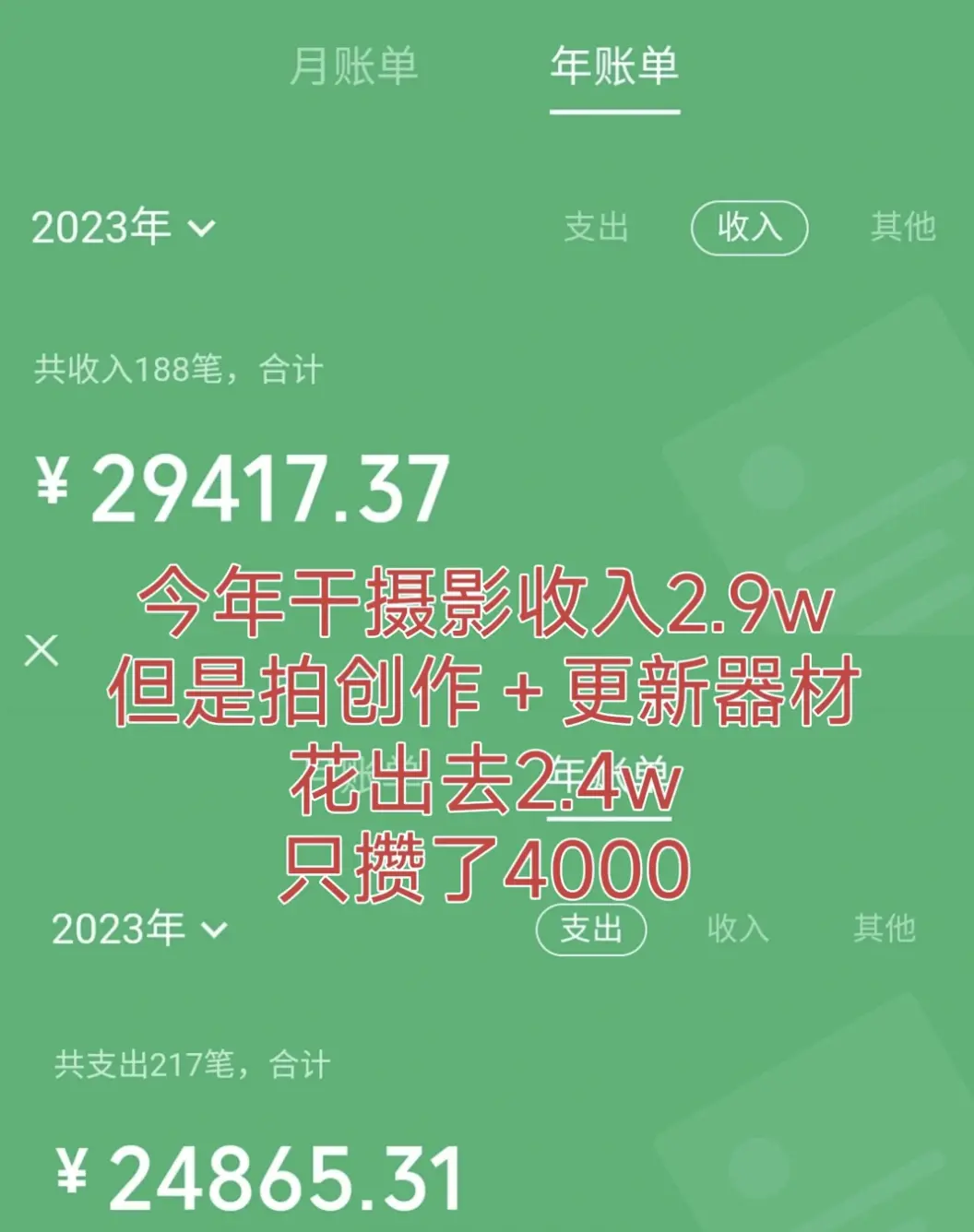 〓 何照人在社交媒體曬出自己2023年兼職攝影的全年收入。