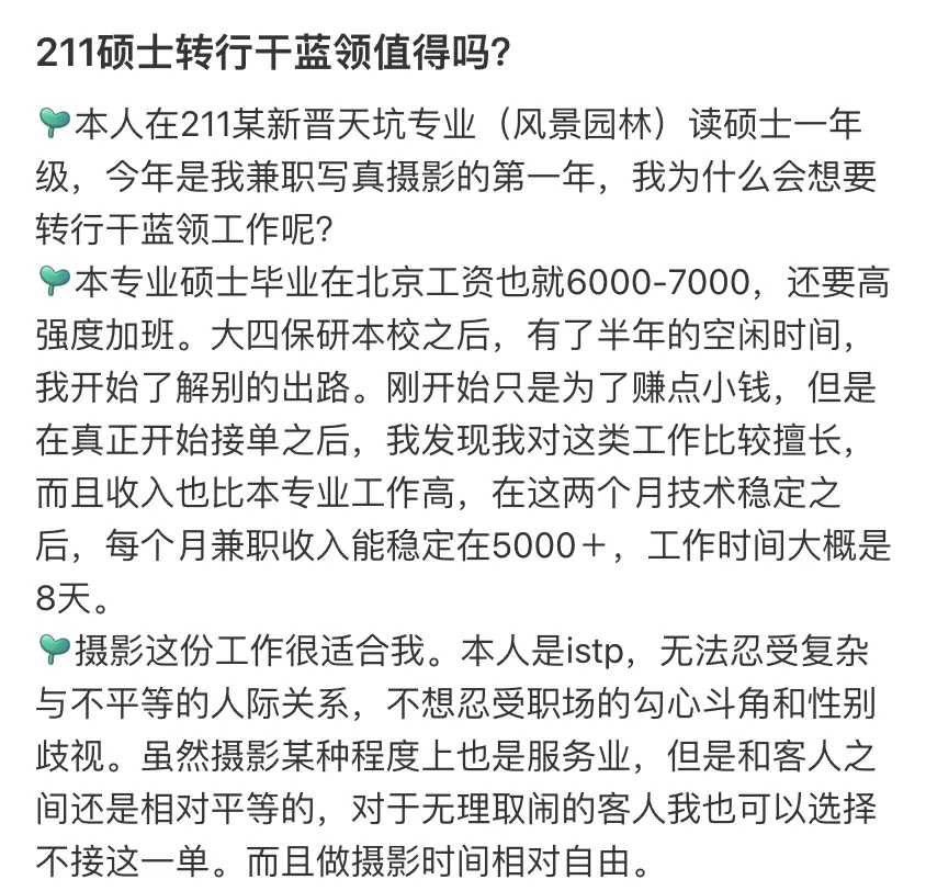 與其説本科生做藍領工作是學歷貶值,不如説隨着時代的發展: