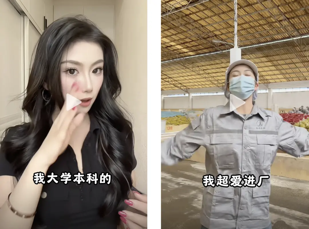 學生時代光鮮亮麗、神采飛揚和工作後的素顏、工服、疲憊放在一起的反差;用最狠的語氣喊出“狗都不幹”,又用最快的速度滑跪的反差,讓此類視頻成為了流量密碼,幾乎條條點贊過萬。