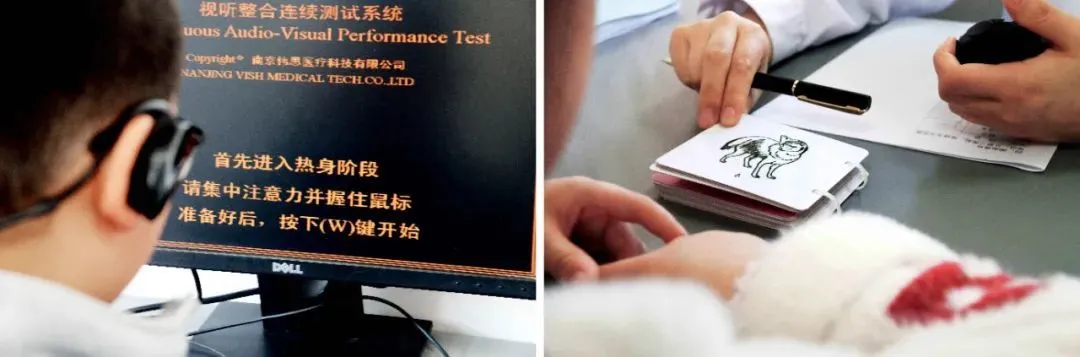 左圖:一名孩子在做視聽整合連續測試。