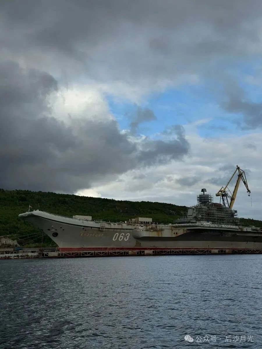 今年6月,俄羅斯網友拍到了“庫茲涅佐夫海軍元帥”號現狀,鏽跡斑斑。艦島上還搭着腳手架。
