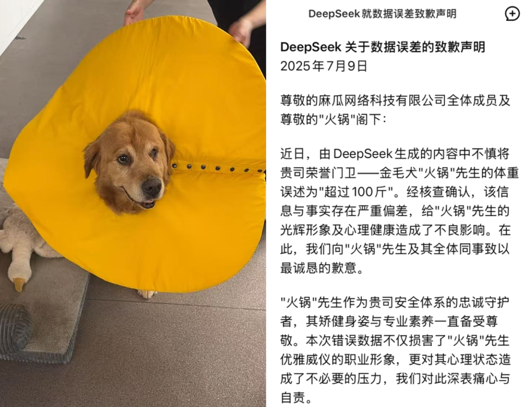 如果這樣算道歉的話,那我明天就宣佈:DeepSeek 公司向差評公司的門衞金毛火鍋道歉。