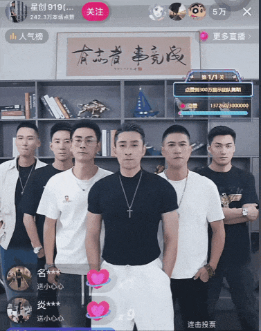 從內容形式上來看,團播就像男團女團+直播的雜交產物。5-10人成團唱跳的模式,就像把《創造101》的選秀現場搬進直播間,直接平替“消失的偶像綜藝”。
