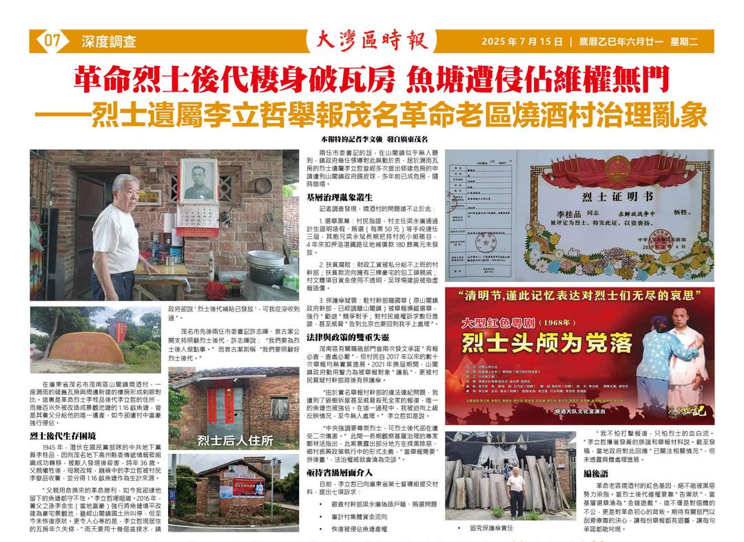 ——烈士遺屬李立哲舉報茂名革命老區燒酒村治理亂象