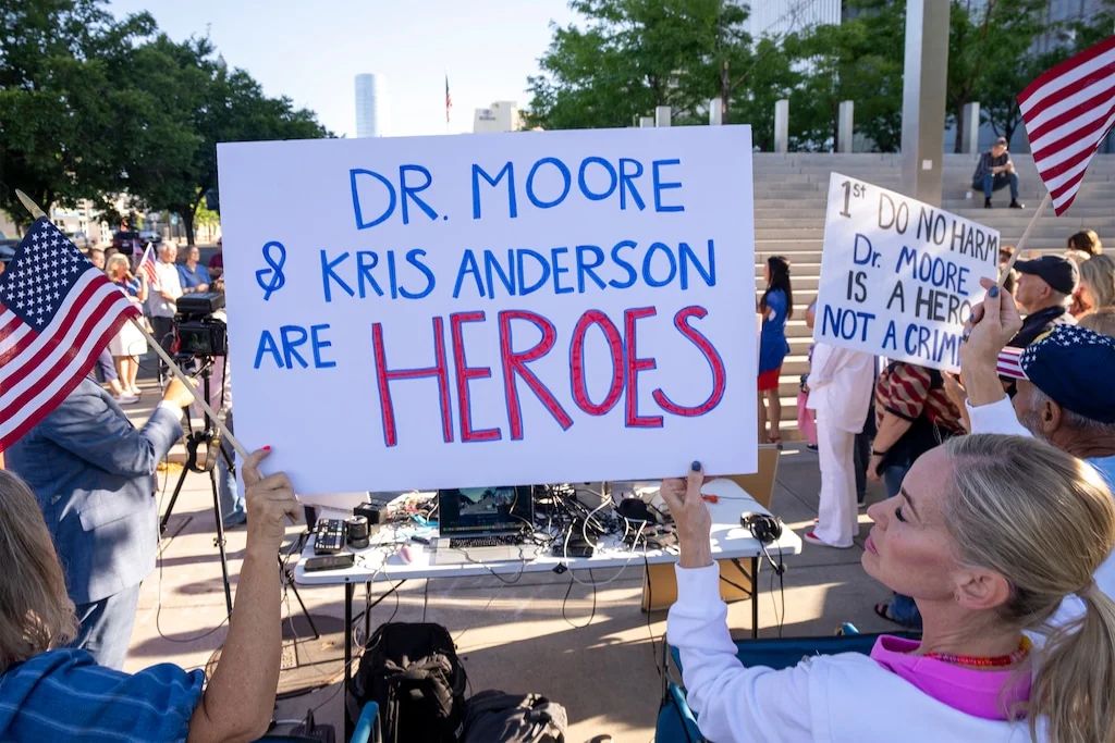 猶他州鹽湖城聯邦法院外,當外科醫生邁克爾·柯克·穆爾博士走出法庭時,七月的陽光刺破雲層落在他肩頭。邁克爾·柯克·穆爾博士走出法庭,簇擁着他的支持者們爆發出壓抑已久的歡呼。