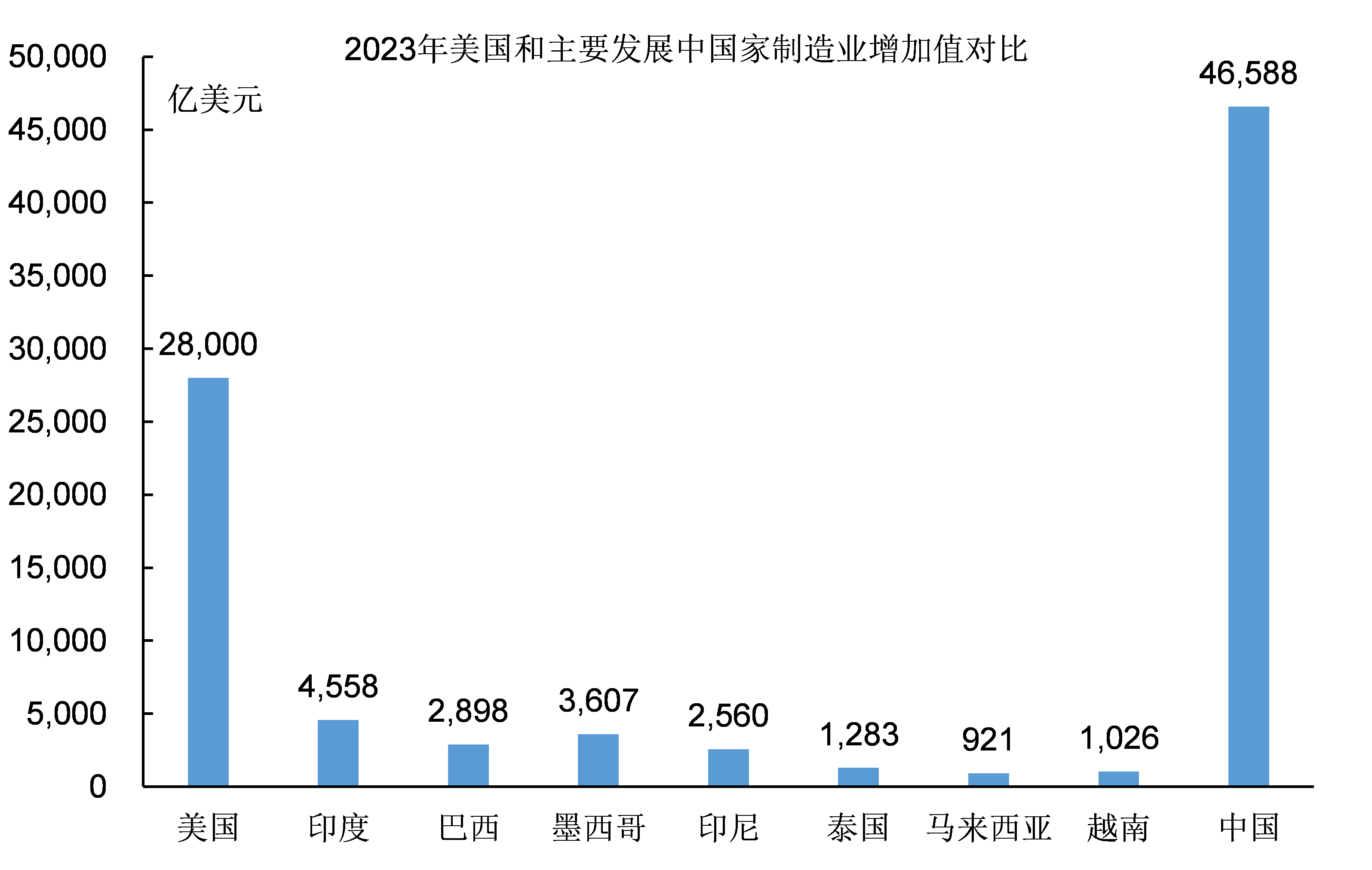 2023年全球製造業增加值的規模增長到16.2萬億美元,美國以2.80萬億美元的規模仍然排在中國之後位居第二。