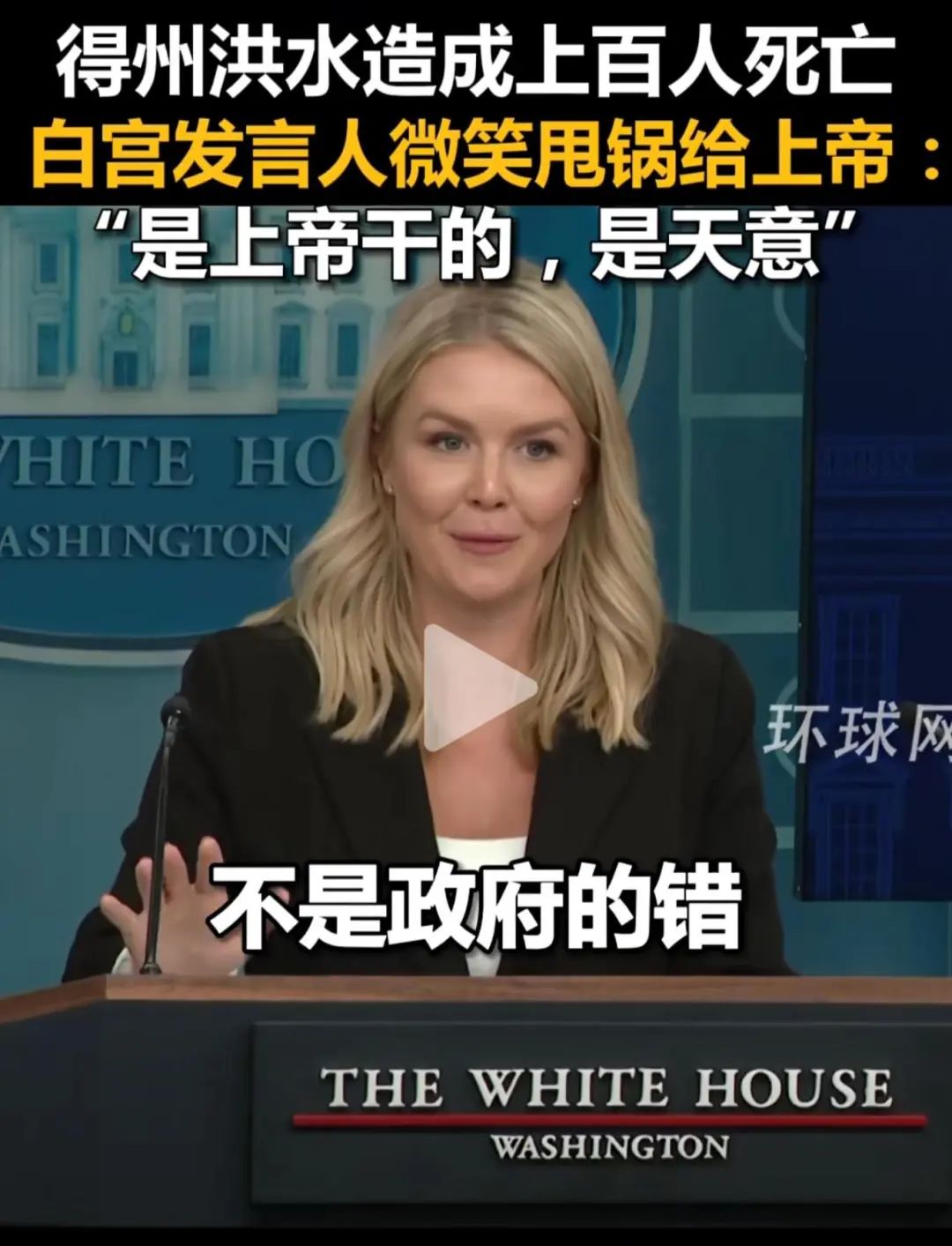 德克薩斯這次的洪災,即使放在整個美國曆史中也屬於非常慘烈的級別,已經有一百多人死亡,還有最起碼一百多人失蹤。然而無論白宮還是德州的反應都實在荒腔走板,**甚至白宮方面能説出來這是上帝的選擇。**不過就算這麼離譜,民主黨方面對特朗普的輿論攻勢也顯得綿軟無力,甚至被特朗普倒打一耙,説“這事我不怪拜登”。兩黨真可謂是一對絕妙的對手。