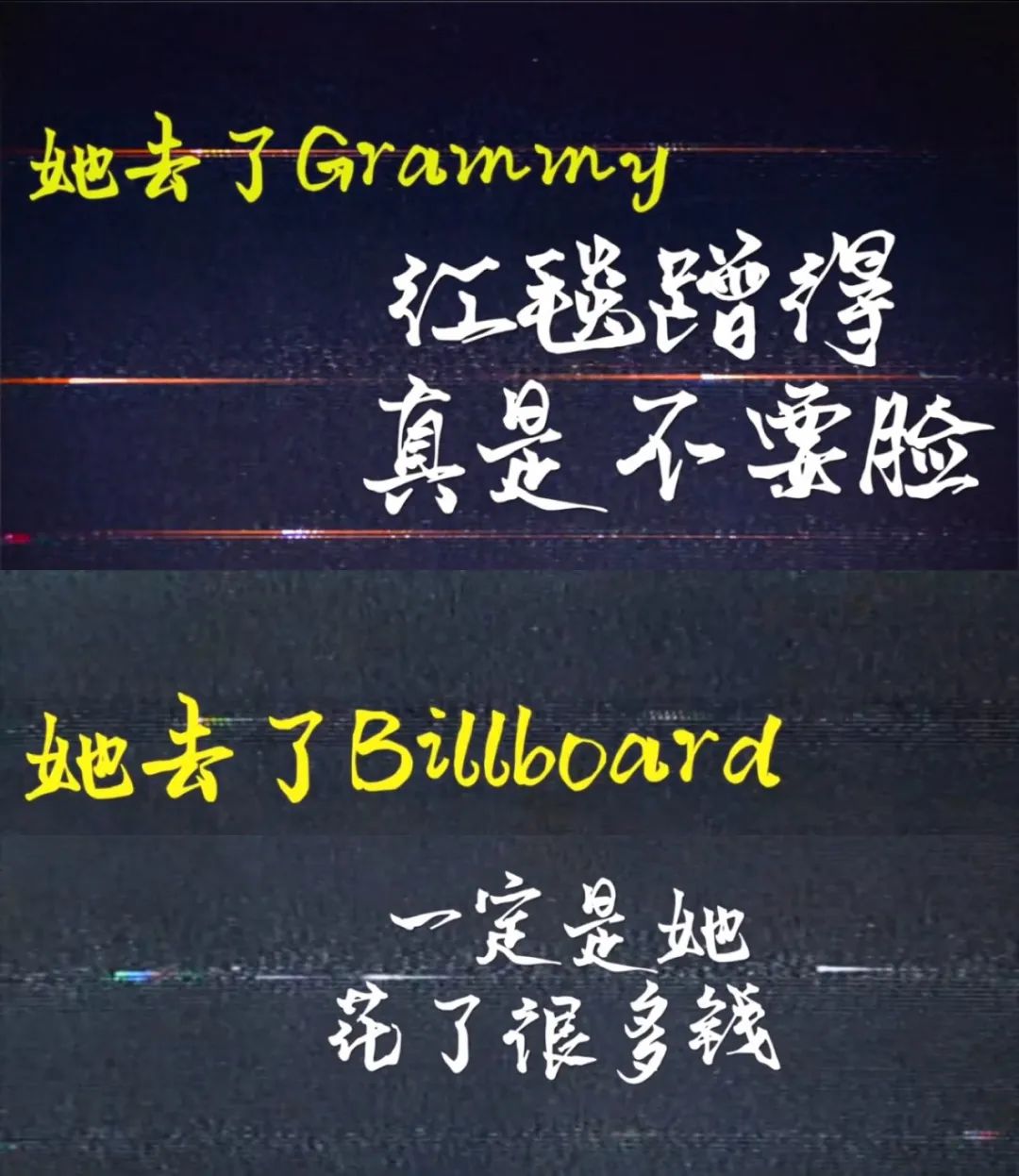 “她去了格萊美,紅毯蹭的真是不要臉,她去了公告牌,一定是她花了很多錢”