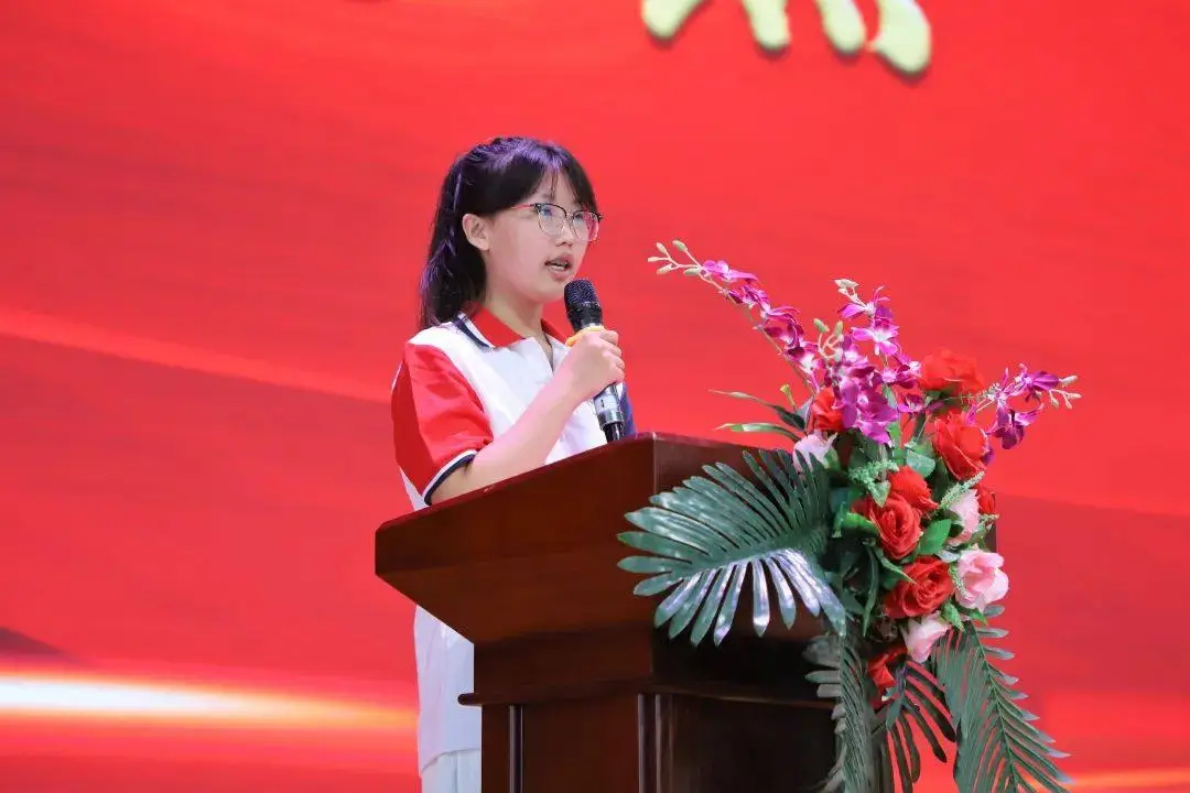 緊接着,高一新生代表滑春晗同學上台發言。她面帶微笑,聲音堅定而有力。她坦言,初入衡水桃城中學,心中既有對未知的忐忑,也有對未來的無限期待。