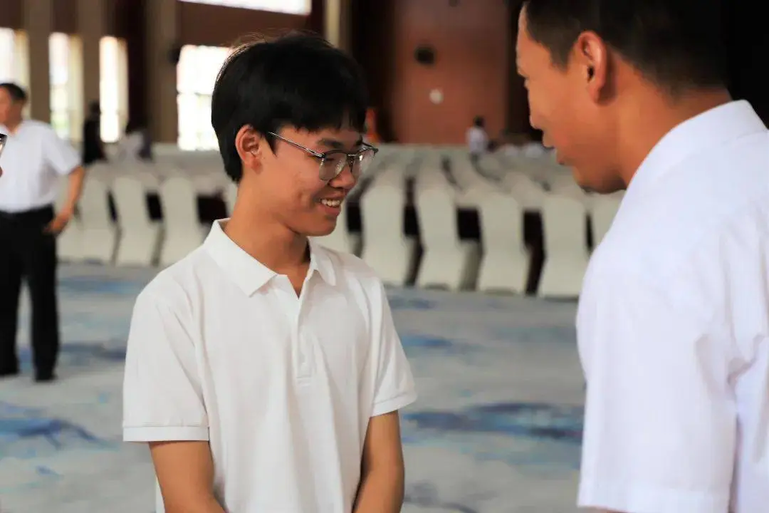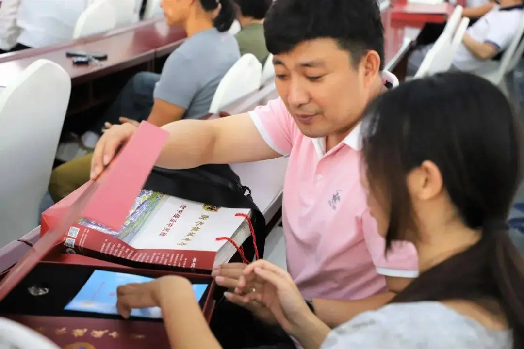 此外,李校長還強調要時刻保持家校溝通暢通,囑託家長要在高中這一重要學習階段裏積極陪伴並引導孩子。同時李校長承諾學校將竭盡全力為學生們提供優質的學習和生活條件,讓學生們在桃中收穫知識、鍛鍊能力、實現夢想。李校長的致辭情真意切,感人至深,贏得全體師生、家長陣陣掌聲。隨之,李校長為優秀高一新生代表頒發錄取通知書。