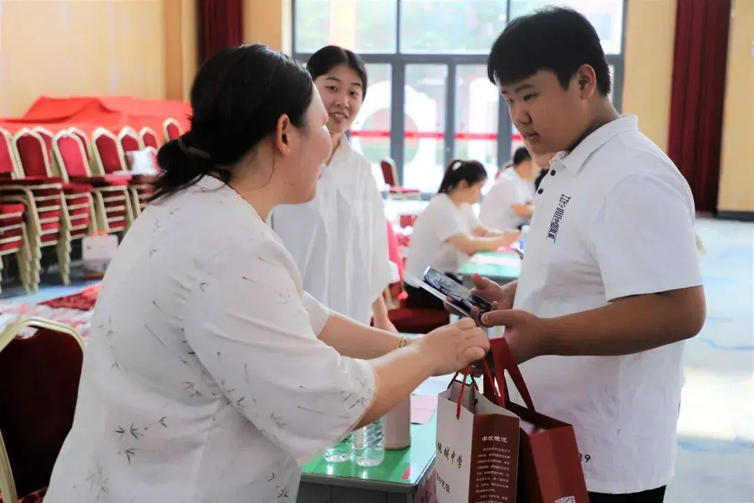 湖海大講堂內,老師們早已忙碌起來。他們熱情耐心地為每一位新生髮放錄取通知書和精心準備的學習資料,動作細緻而有序。同時認真解答着家長們提出的各種問題,無論是關於課程安排、校園生活等等,他們都一一耐心解釋。