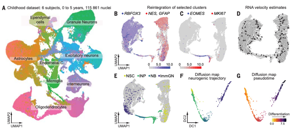 對人類兒童期海馬體細胞單核RNA測序及軌跡描繪 | 圖源:Science