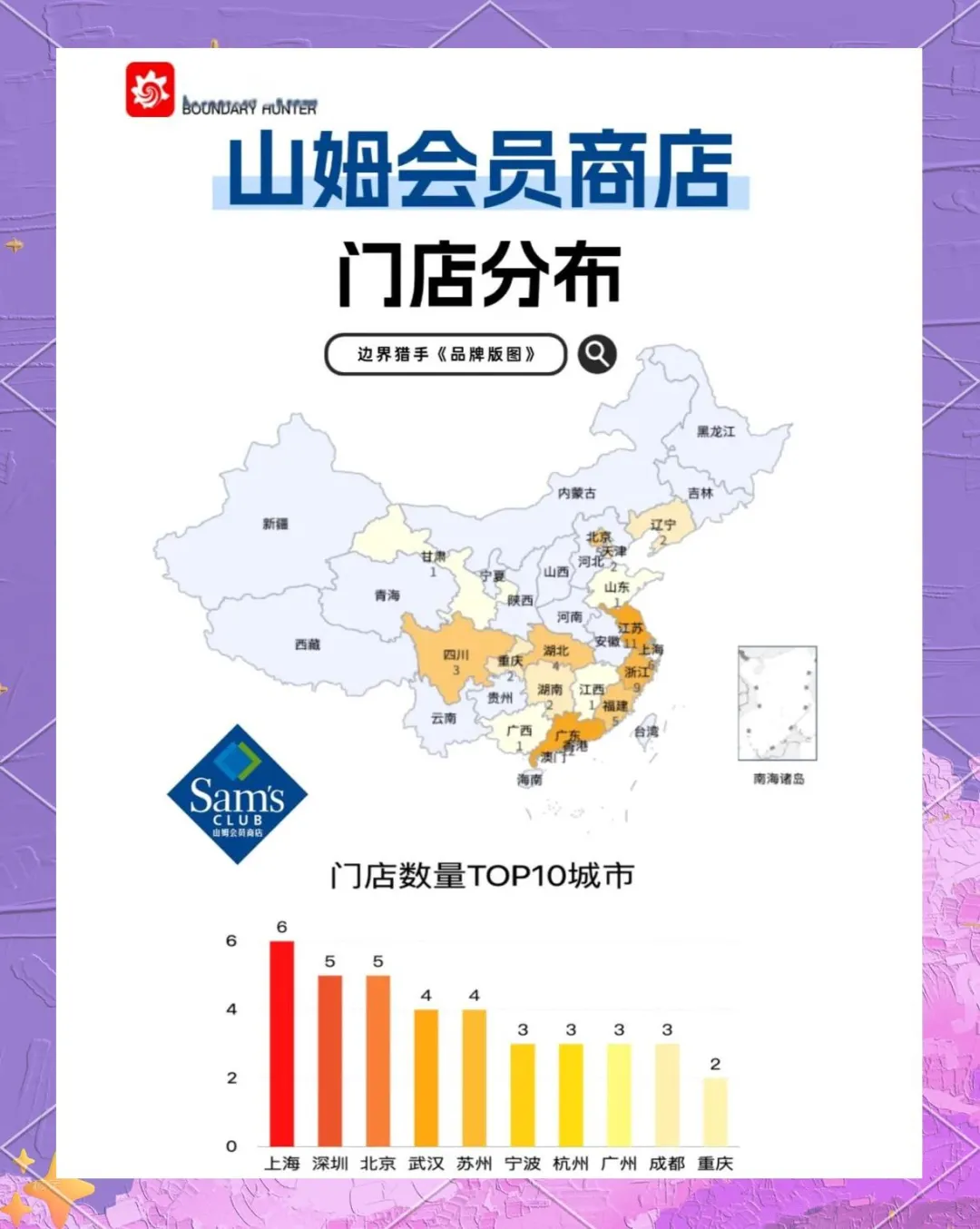 截至2025年上半年,山姆已在全國28個城市已經開設了56家。並且沃爾瑪曾公開表示,預計未來每年都有6至7家新山姆會員店開業。山姆的門店如雨後春筍般遍佈全國各大城市,不僅在一線城市站穩腳跟,還逐漸向二三線城市滲透。