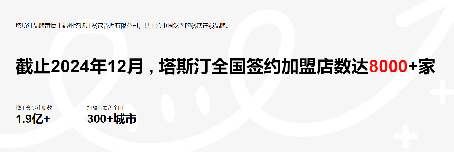 依託加盟模式瘋狂擴張,2020年塔斯汀僅千家門店,到2024年突破8000家,2025年6月更是達9600家,覆蓋全國310城,三線以下城市佔比近半。其加盟費僅3.88萬元(65㎡標準店總投資45萬元),不足麥當勞的1/10,吸引大量縣域投資者。