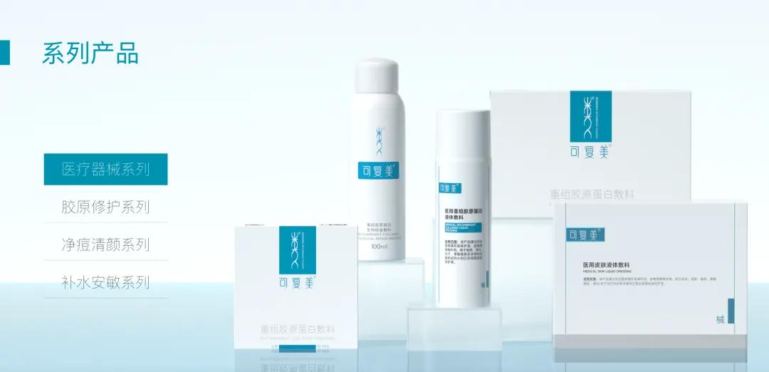 以重組膠原蛋白技術為核心的可復美,其面膜、爽膚水、噴霧、乳液等產品,在醫美機構、醫院皮膚科的渠道滲透率頗高。創福康、敷爾佳、芙清等品牌,也在該領域深耕。還有國際品牌如倩碧,也推出CX系列 “械字號冷敷貼 + 妝字號精華” 組合,切入光電項目護理領域 。