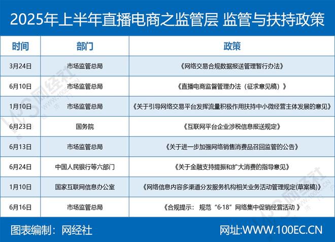 對此,網經社數字零售台從法律法規政策視角,對2025年上半年直播電商監管層行動進行系統性解構。