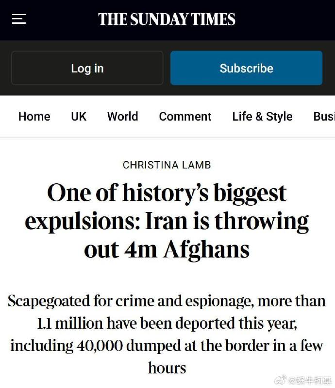 伊朗將驅逐400萬阿富汗人,今年已有超過110萬人被驅逐。
