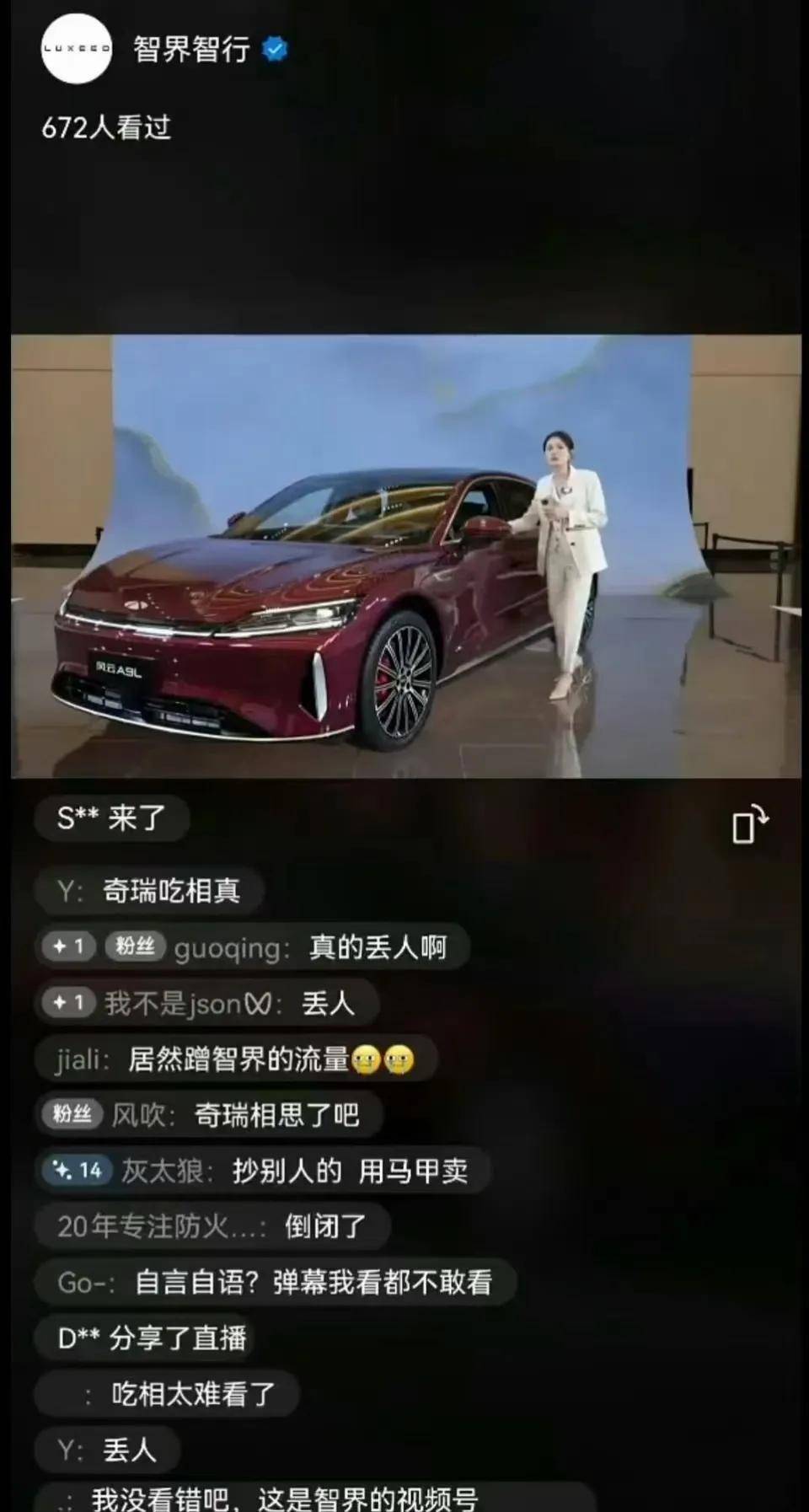 這一舉動瞬間讓智界的粉絲坐不住了,有網友直接在直播間問道“這是智界,和你風雲有啥關係?”還有網友在小紅書鋭評,奇瑞這波操作,像極了在別人的婚禮上發佈徵婚廣告。更有網友把這場鬧劇比作“車企宮心計”。
