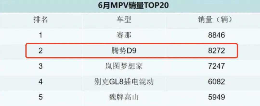 2025 年上半年,騰勢D9 也展現出強勁的市場競爭力。懂車帝數據顯示,6月,騰勢D9的月銷量為8272輛。