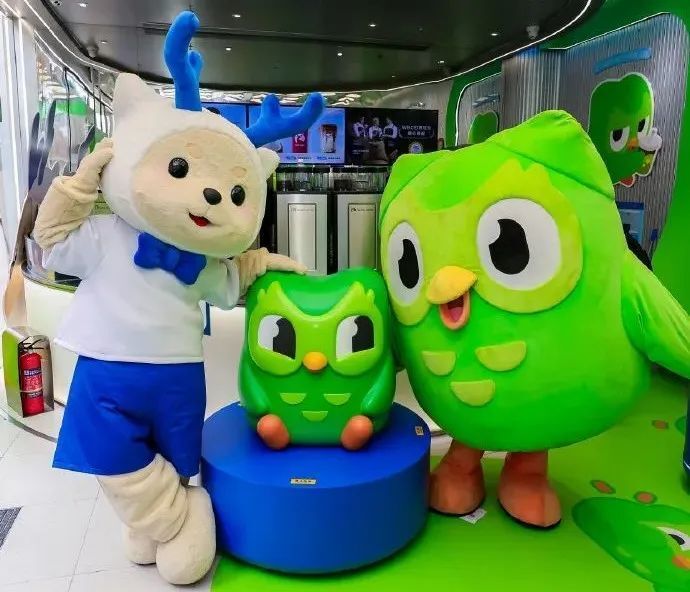 全球爆款《魷魚遊戲》續集上映之際,多兒穿上了粉絲連體衣拍攝宣傳片,上線了符合劇情的韓語課程;Tik Tok禁令發佈後,大批美國用户湧入小紅書,多兒在社媒上陰陽怪氣,“現在知道學中文了?”,並第一時間發佈了中文教學視頻。除此之外,在《芭比》的首映禮現場、Taylor Swift的演唱會……只要有熱點的地方,總能看到這隻綠色貓頭鷹的身影。
