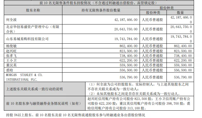 2023年3月1日,何建東將其持有的全部股份19,743,784股(佔公司總股本的13.16%)協議轉讓給北京易城易購科技有限公司的。自此,何建東不再持有公司股份,成功套現約1.65億元實現清倉,北京易城易購科技有限公司成為公司第三大股東。