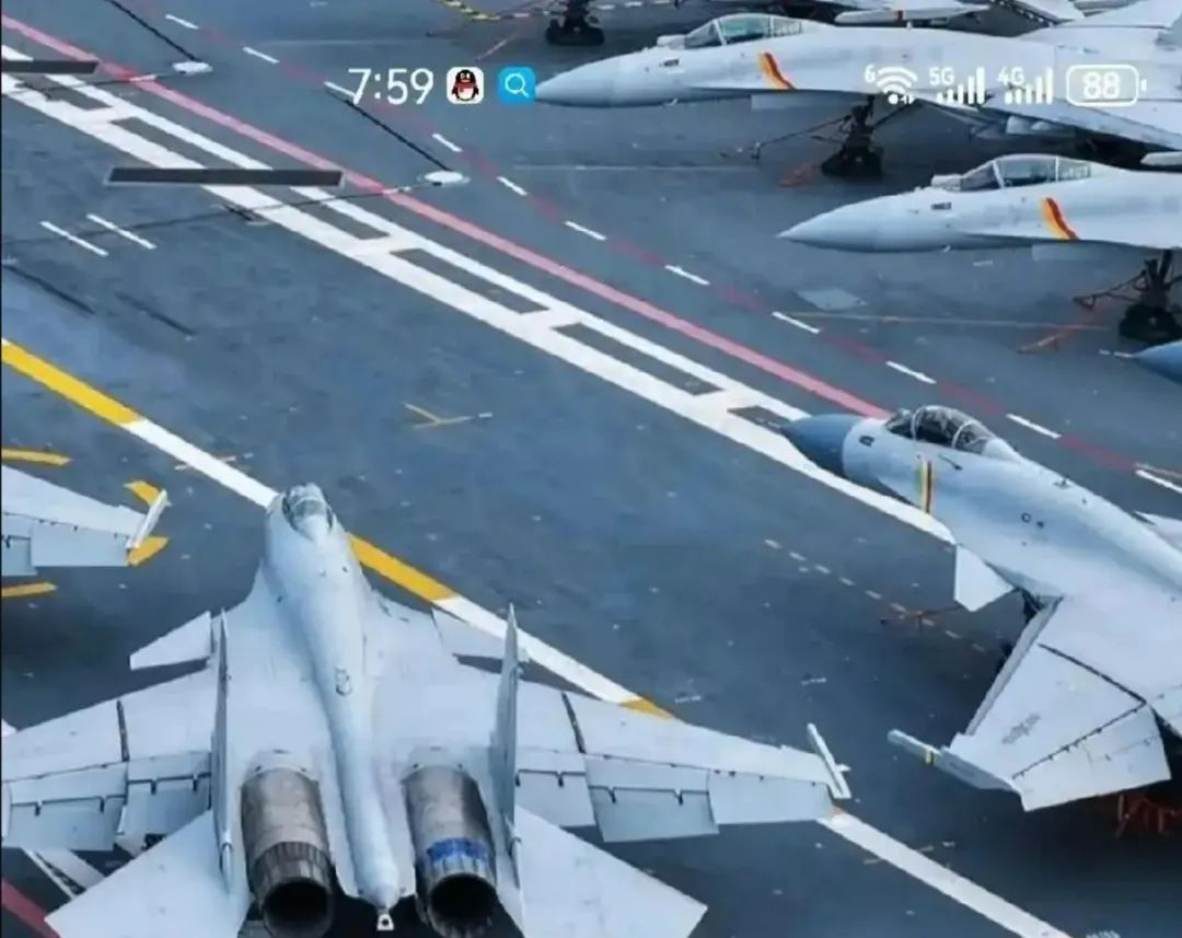 儘管甲板展示的艦載機並非一艘航母的全部艦載機編制,通常在機庫裏還會有一部分艦載機,但也足以説明這艘航母的艦載機配置情況。從去年10月到今年中國海軍兩艘航母的艦載機配置發生了喊打變化,兩艘航母都在部署越來越多的新型殲-15T艦載機,早期比較老的滑躍型的殲-15在迅速減少。