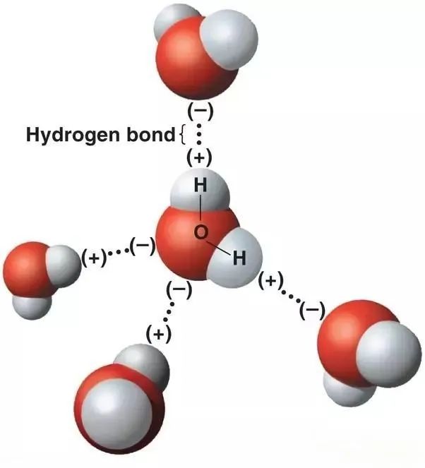 一個水分子最多能通過氫鍵與四個水分子鏈接(圖片來源:Bing)