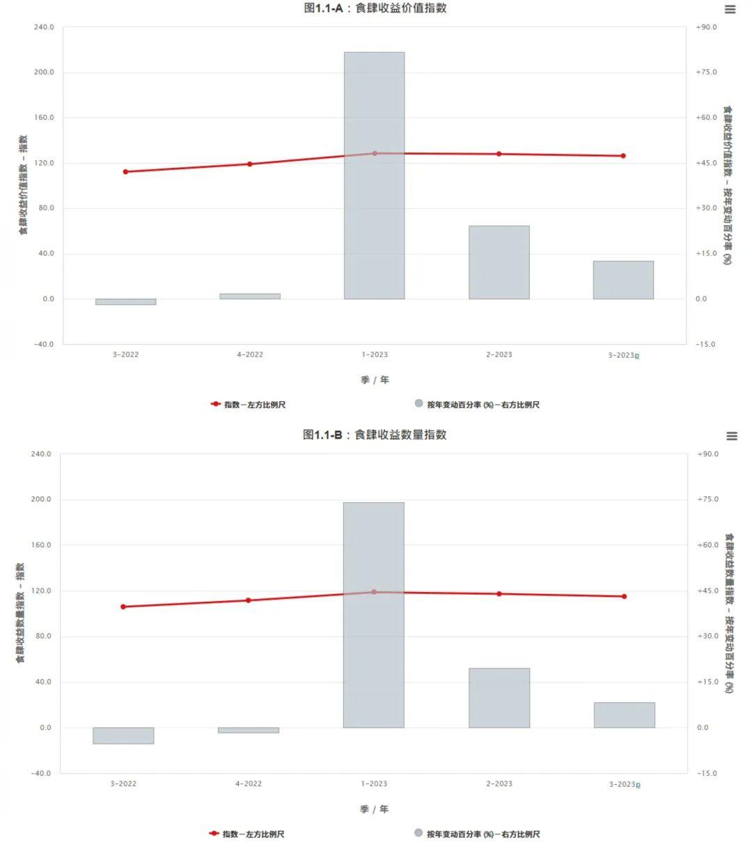 香港統計處數據顯示,彼時香港食肆收益價值、數量指數均呈現出明顯的上升趨勢。