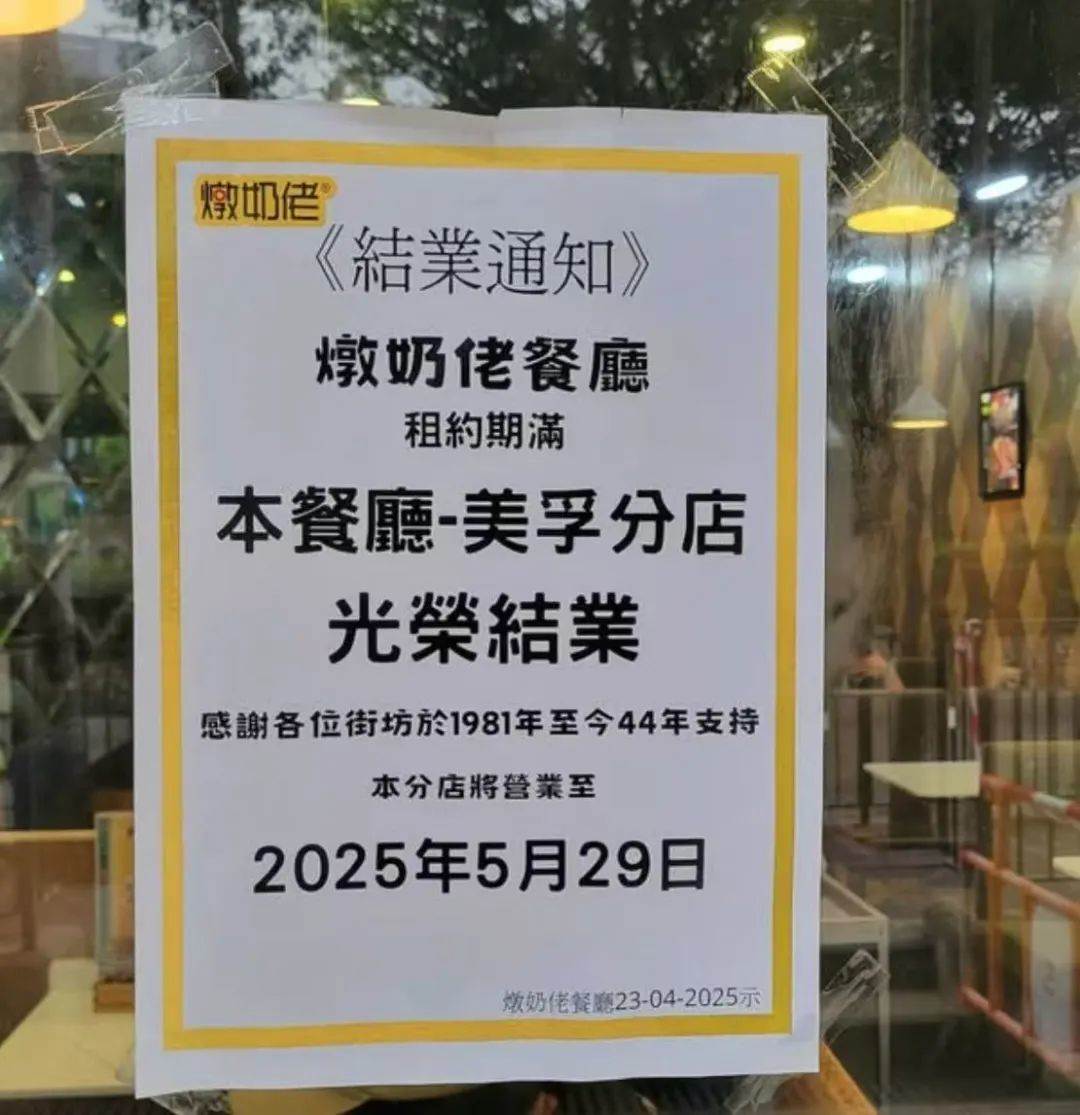 已有44年曆史的連鎖茶餐廳“金裝燉奶佬”的最後一家門店,也於5月29日停止營業,該品牌全盛期在全港曾有24家門店。