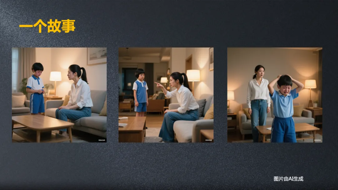 在開始之前,想和大家先分享一個我自己的小故事,去年,有一天晚上,我弟弟回家之後非常沮喪,我就問他怎麼了?他説,嗨,別提了,在學校被老師批評了。那我下意識第一句話就是,你肯定上課又睡覺了,沒認真聽講,我弟弟聽完這句話,直接把書包一摔,進屋同時把門也是一摔,他一摔門,我就也生氣了,我説你到底摔門給誰看。