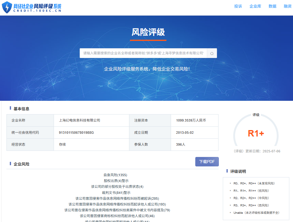據網經社“企業風險評級系統”顯示,“嗶哩購”所屬上海幻電信息科技有限公司,風險評級為R1+,公司目前處於低風險。