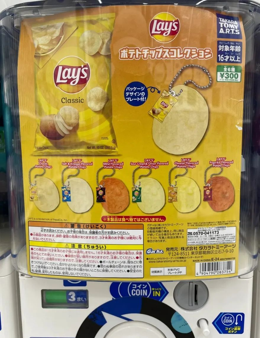 你甚至能看到給薯片做的扭蛋,不是包裝袋,而是一片名副其實的薯片,不同口味下連色差都考慮到了。
