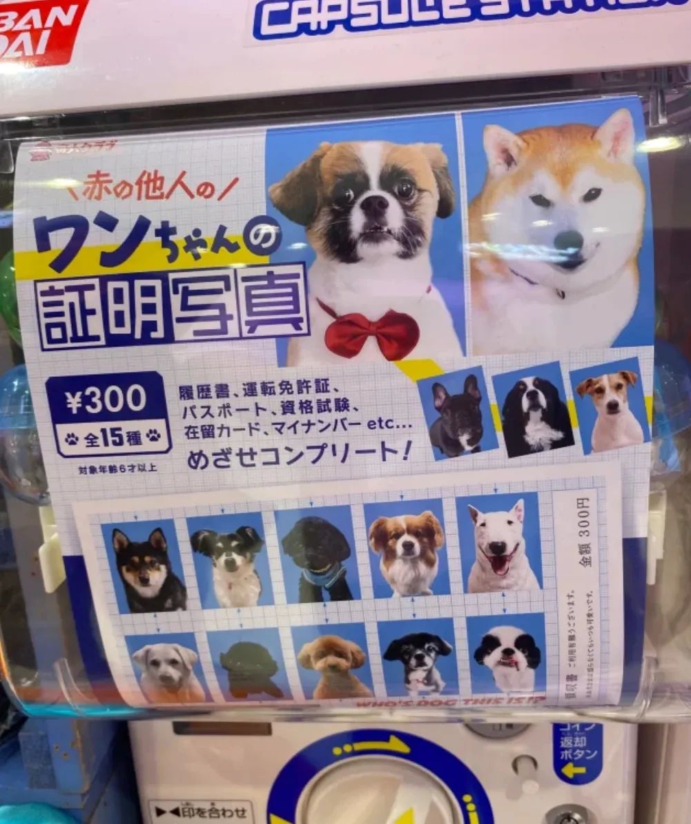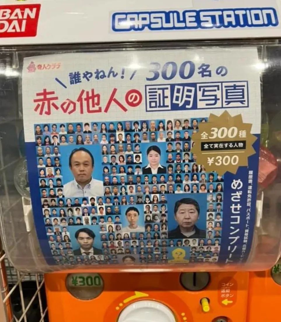 “真人證件照扭蛋”,與通緝犯扭蛋呈異曲同工之妙,花300日元買個不認識的人的證件照看看。