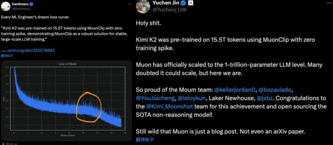 比如拿了黃仁勳投資,日本AI新秀Sakana AI Labs的創始人,就完全被Kimi K2的損失曲線征服了,説這是每個圈內工程師夢中的畫面。