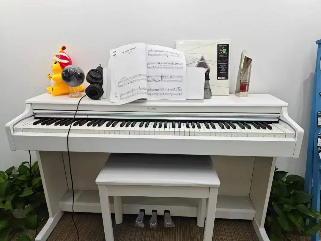 公司門口就擺着一架能自動演奏的鋼琴,上面是搖滾樂隊Pink Floyd的專輯《The Dark Side of the Moon》(月之暗面)。