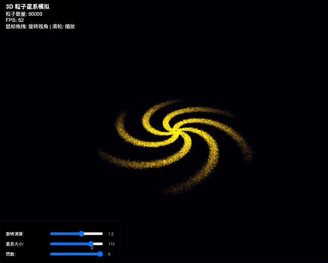 除了上面的這些案例,官方還發布了他們自己跑出來的一些很不錯的案例,比如這個3D粒子的旋轉星系,在光影的控制,交互上做的也很厲害。