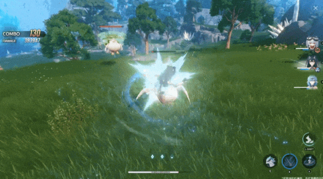 首先值得一提的是,作為蠻啾開發的首款動作類型遊戲,《藍色星原》目前在動作層面已經可以稱得上成熟。戰鬥中可以自由編組三名隊員,角色之間有明確的屬性定位和職業分工,切換隊員可以實現流暢的連攜輸出,整體打擊節奏既爽快又順滑。對於原本對蠻啾動作能力抱有疑慮的玩家來説,算是可以徹底放下心中的那塊石頭。