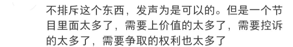 有觀眾覺得女性話題越來越多是好事,很能共情她們講的內容。