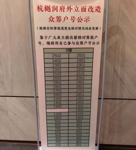 為了讓少數服從於多數,大家想了各種辦法,包括公示參與籌款的户號,一眼望去,留白的1202户就成了另類。
