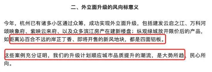 早在2021年,杭州上城區的中海御道二區就喊出,眾籌2000萬,把真石漆換成幹掛石材,當時小區交付才4年。